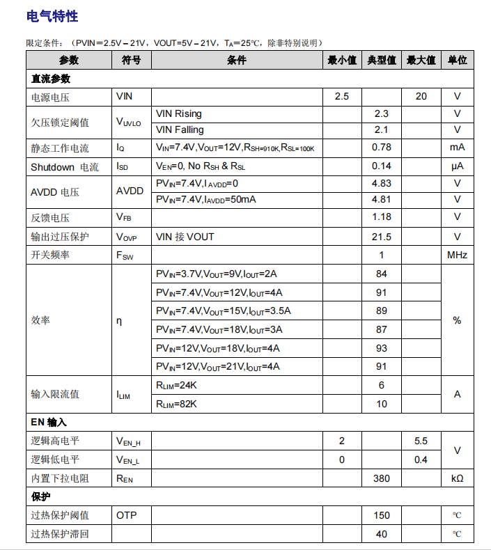 内置过热保护,逐周期过流保护,输出过压保护(VIN VOUT 供电时)