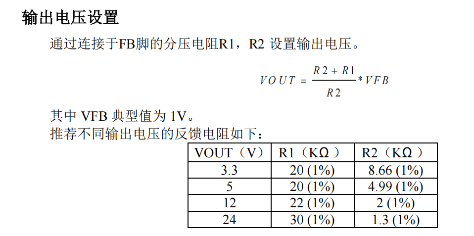 TX41390 通过设置FB引脚的分压电阻可设置输出恒压值。