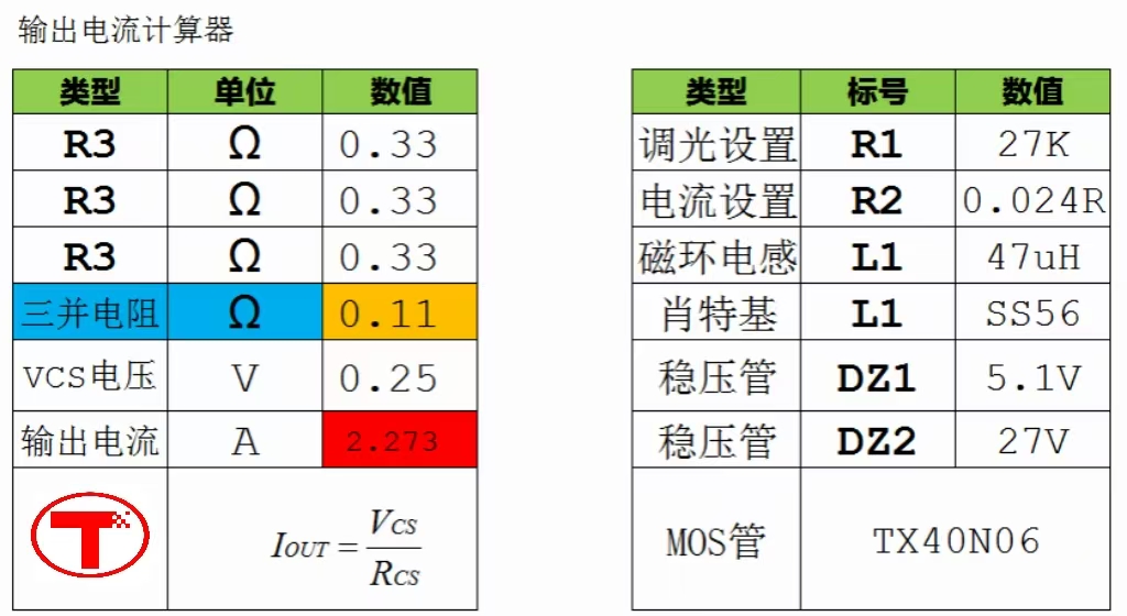 TX6301 输出电流计算器